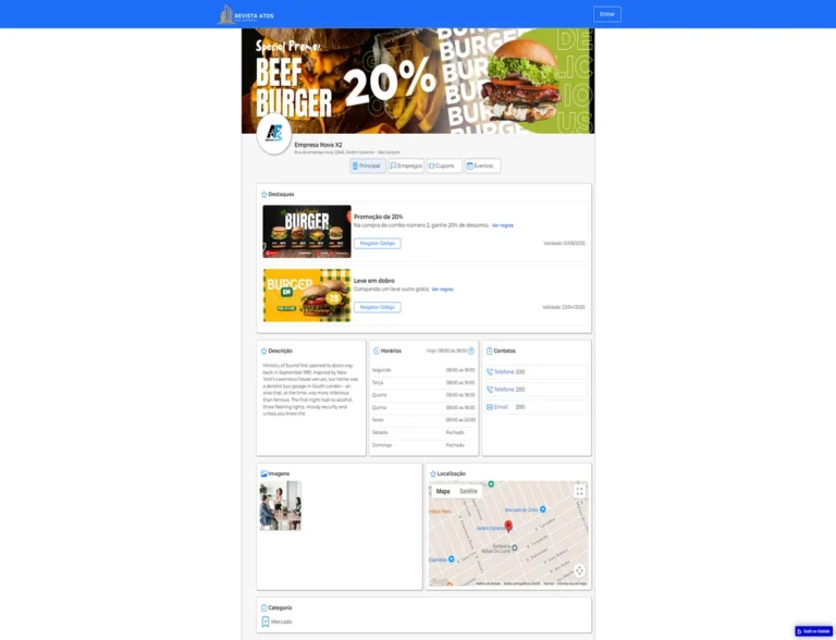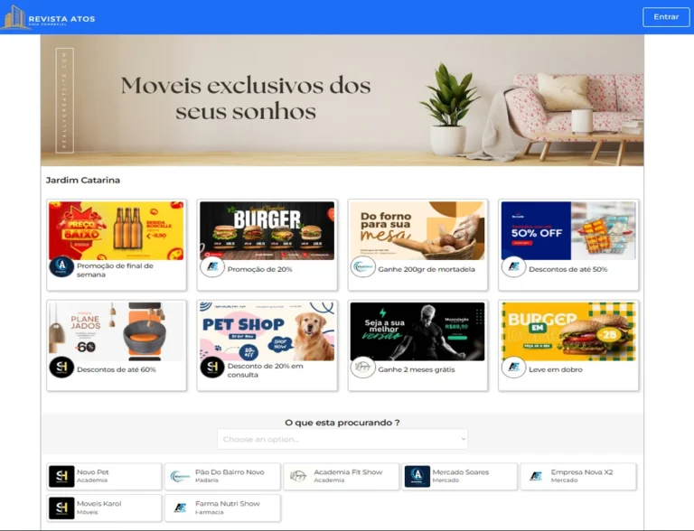 A revista digital Atos foi idealizada como uma vitrine moderna para o comércio local, reunindo empresas de diversos bairros em um único ambiente online. O projeto teve como principal objetivo fortalecer o comércio de bairro, oferecendo uma plataforma acessível e bem estruturada para divulgação de serviços, produtos e promoções.